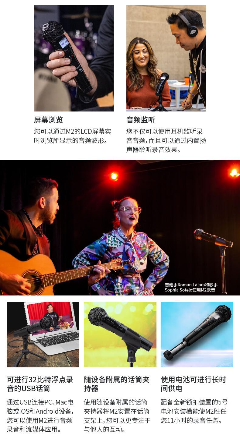 ZOOM M2 MicTrak 32-bit 浮点录音笔/USB话筒麦克风
