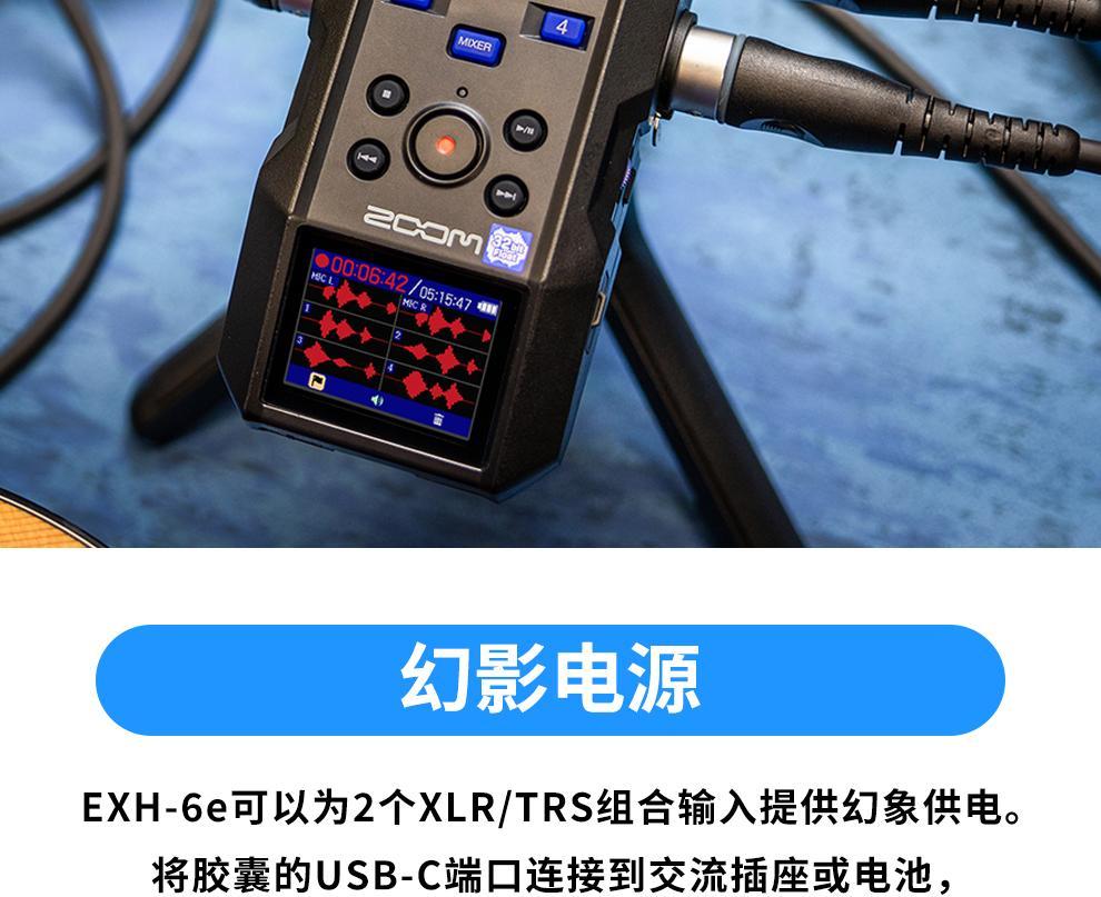ZOOM EXH-6e 双通道话筒麦克风扩展接口支持48V供电 H5studio/H6E