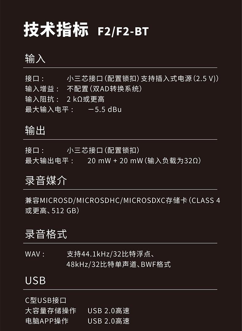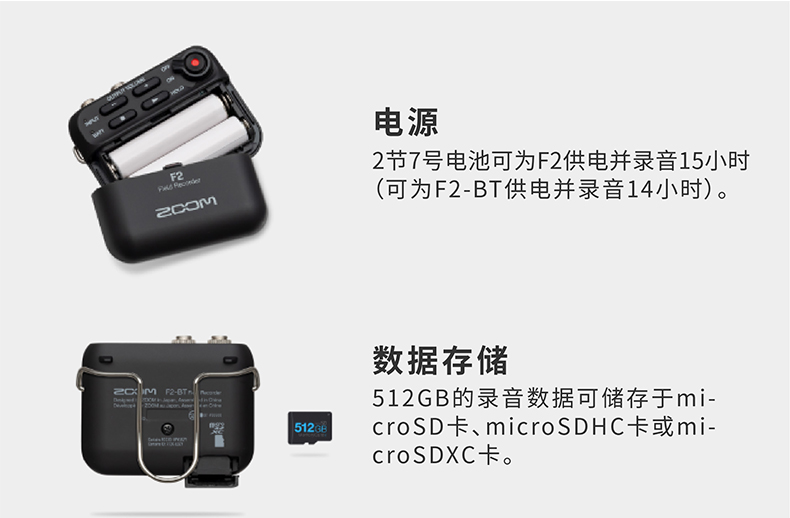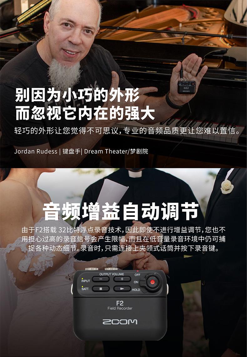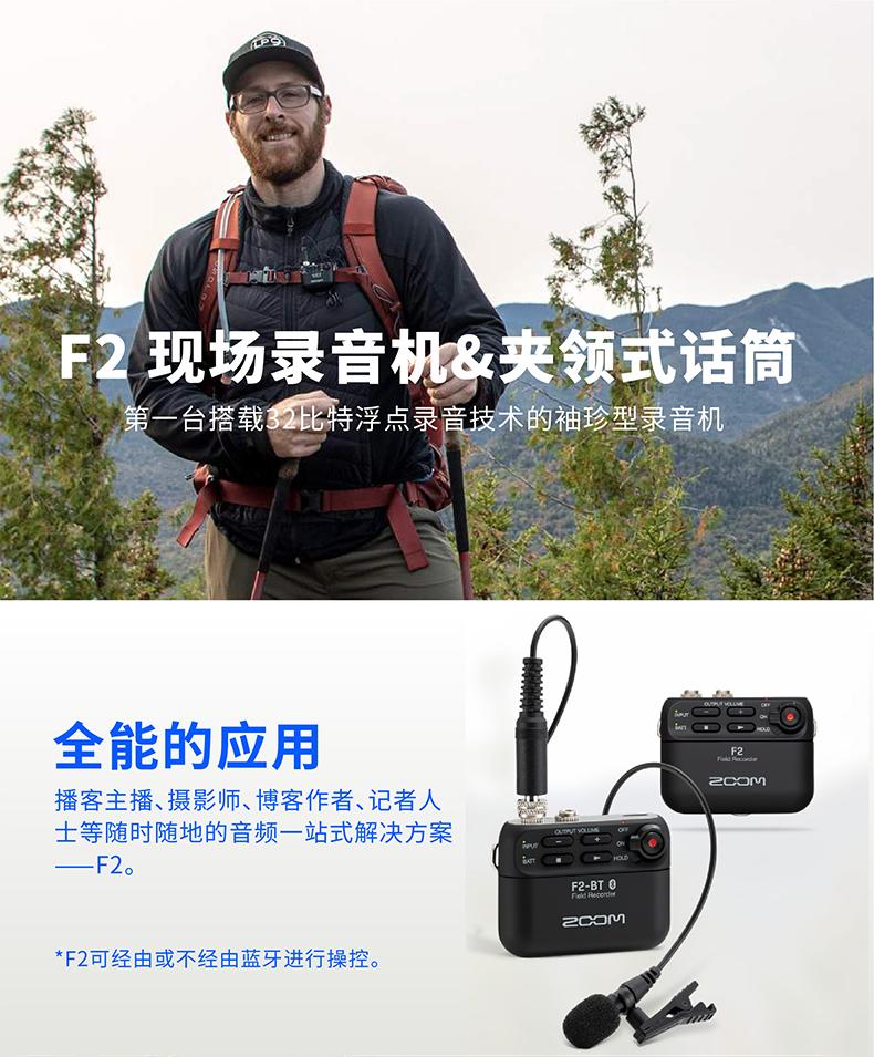 ZOOM F2/F2-BT 专业32位小巧便携录音机笔领夹话筒胸麦克风咪头