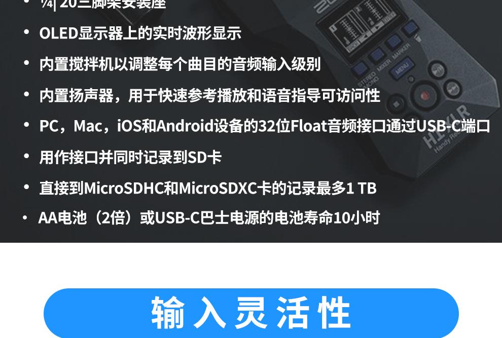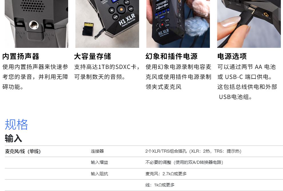 ZOOM H1 XLR 小巧便携手持录音机