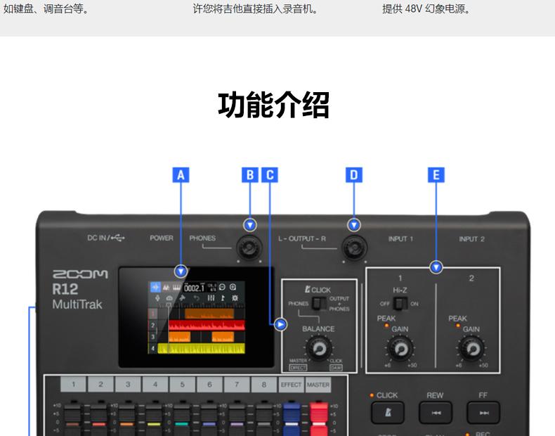 ZOOM R4/R12/R20 便携音频工作站/多轨道录音机