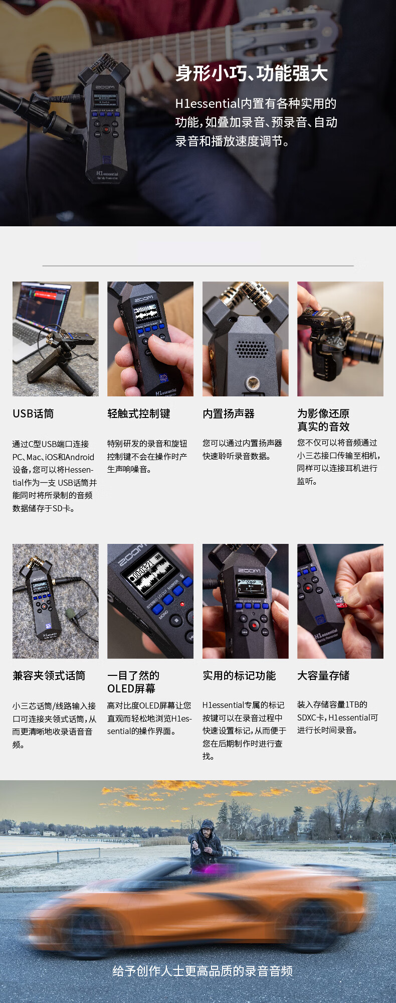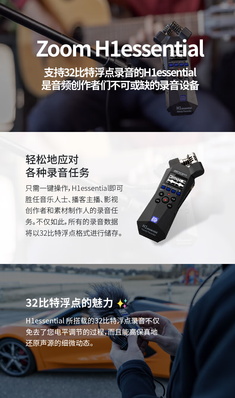 ZOOM H1essential 32浮点立体声便携小巧录音机数码录音笔