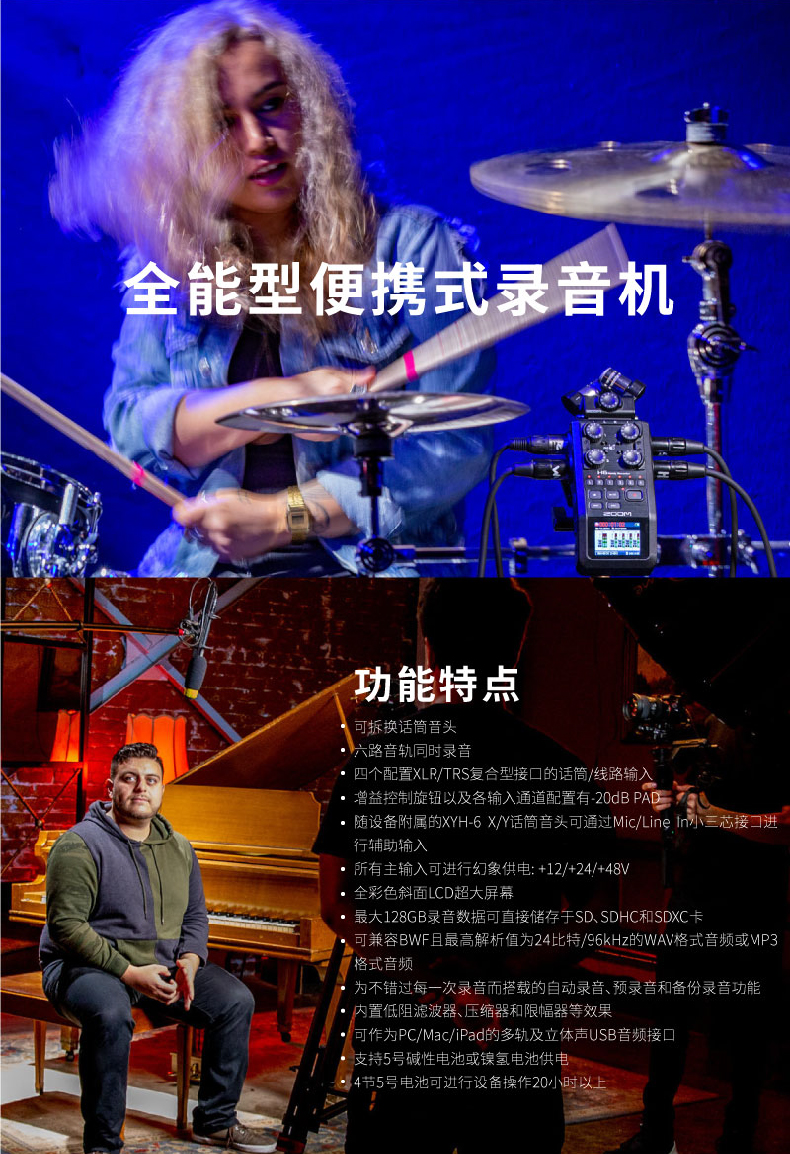 ZOOM H6 便携多轨立体声录音机