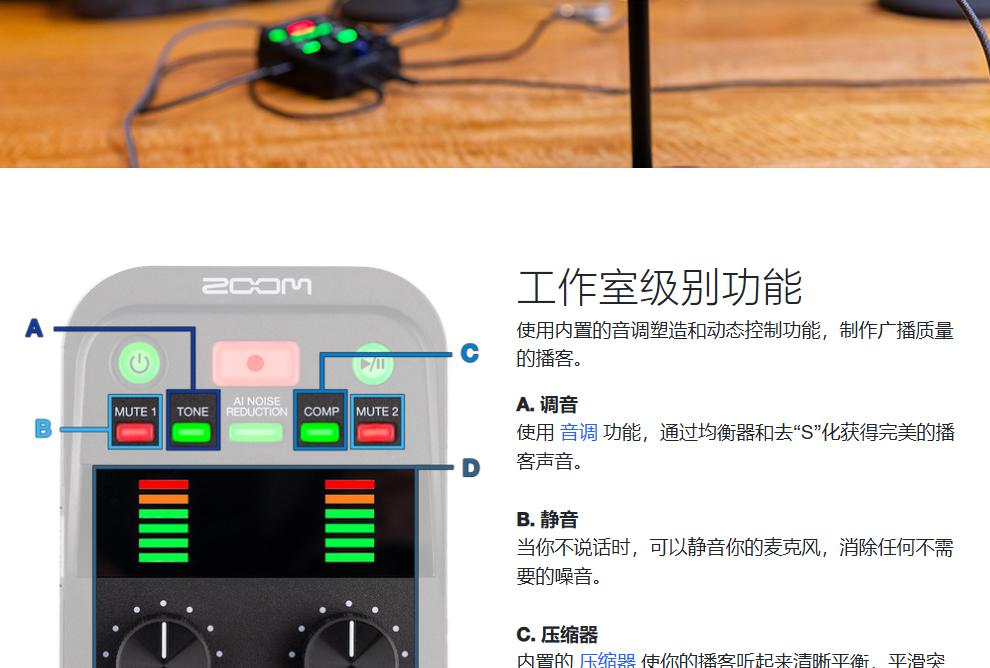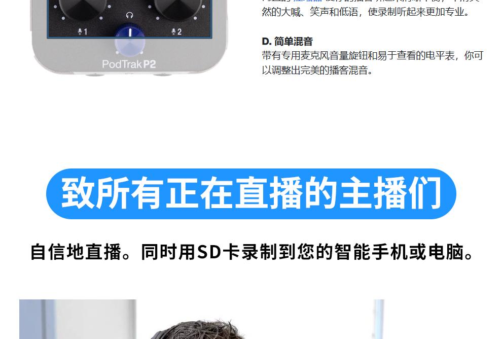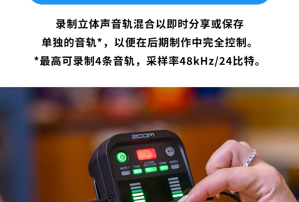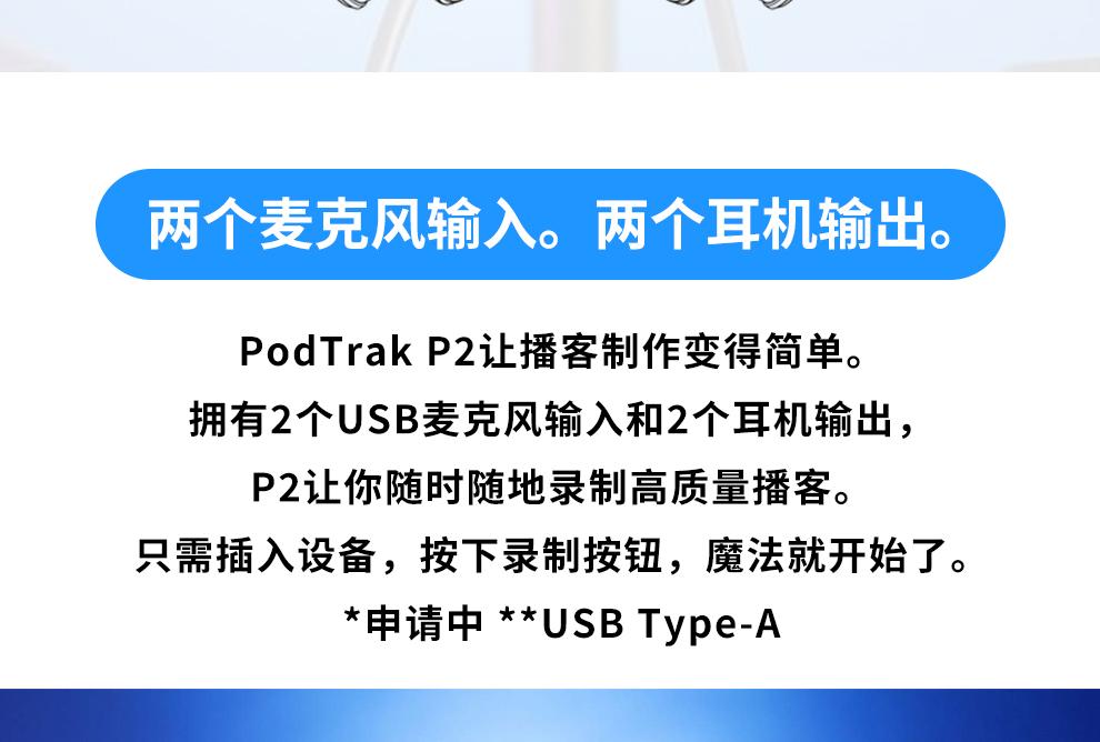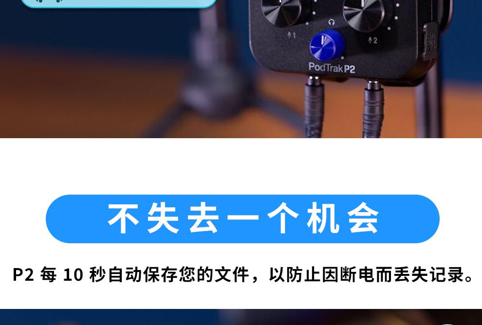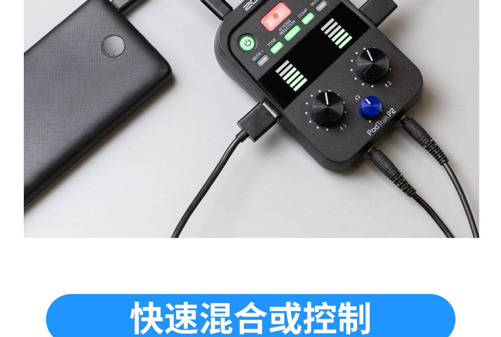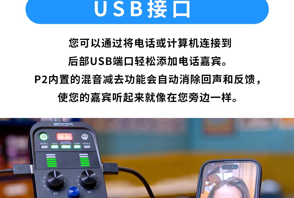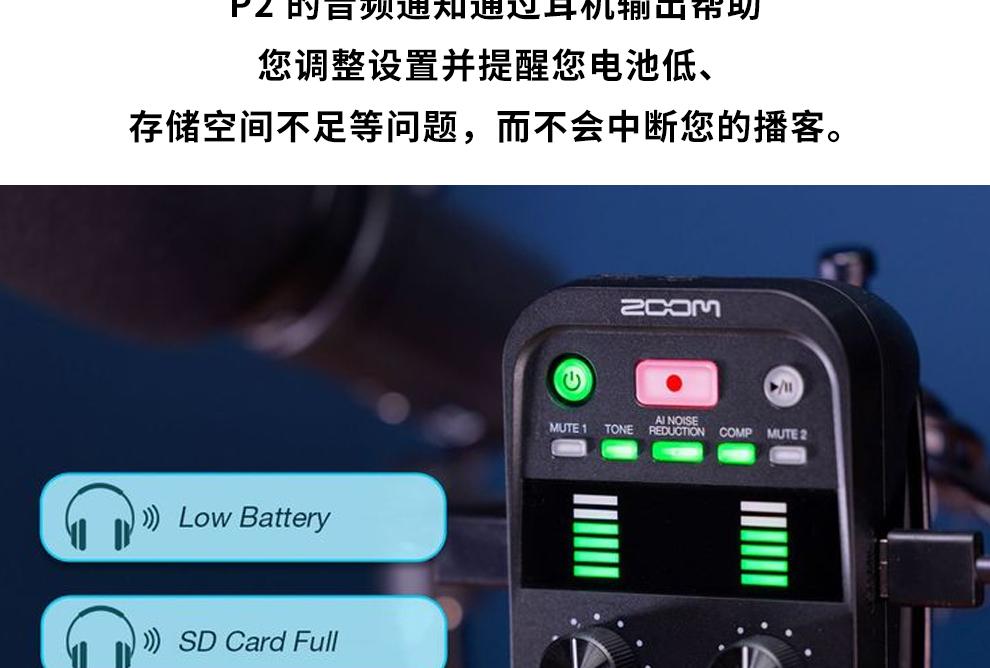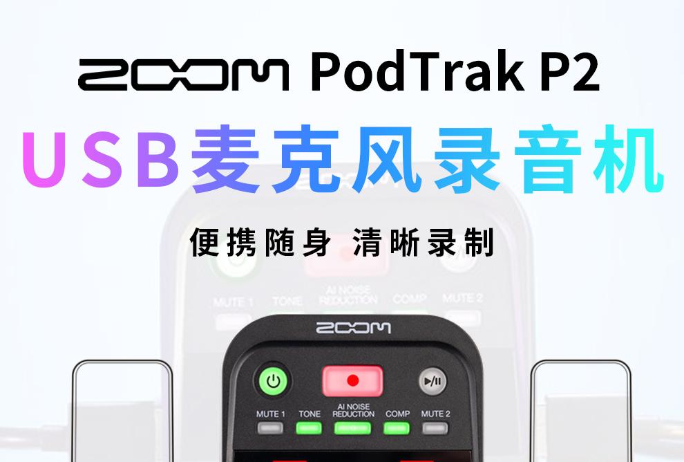 ZOOM PodTrak P2 USB话筒麦克风播客录音机/声卡