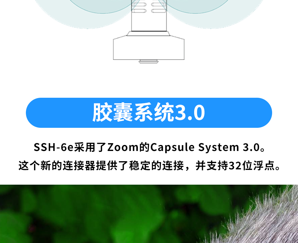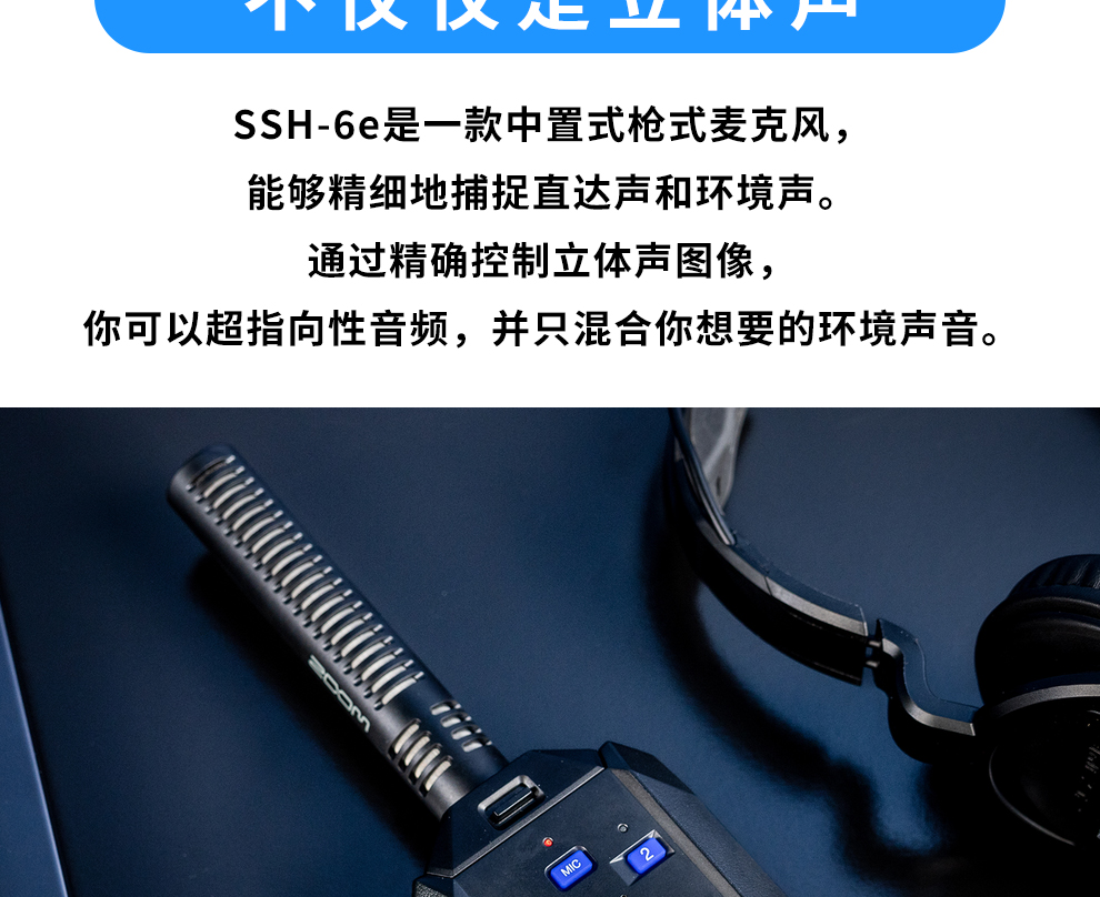 ZOOM SSH-6e 立体声枪式录音机话筒麦克风头适配H5studio/H6E