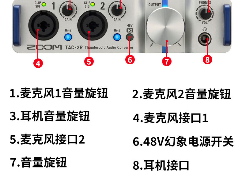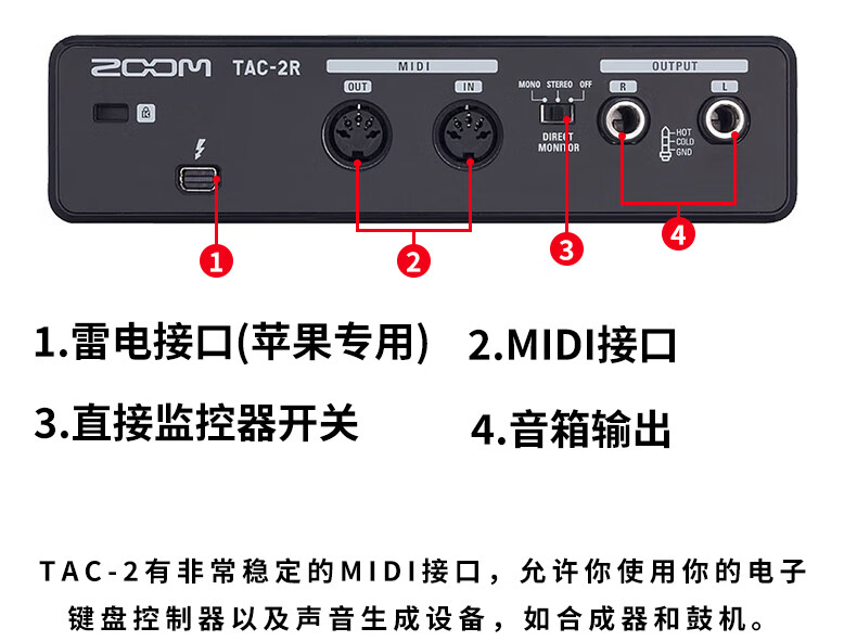 ZOOM TAC-2R 专业雷电音频接口录音声卡 苹果电脑专用